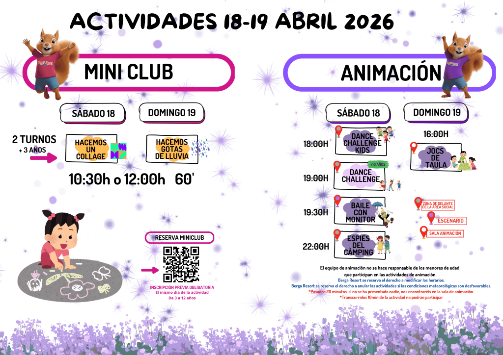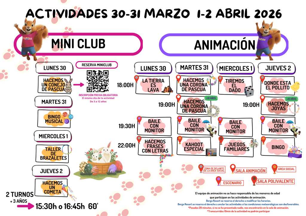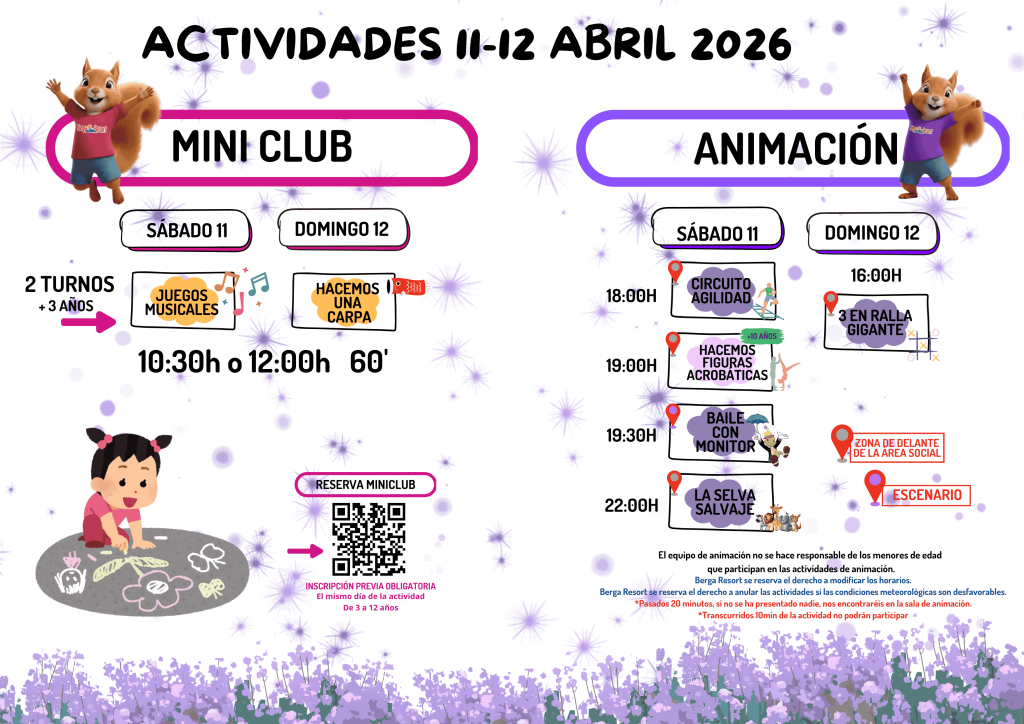 At BERGA RESORT , the little ones can enjoy all kinds of activities carried out by our entertainment team.