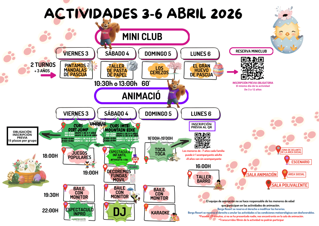 At Berga Resort, every weekend, holiday and holiday period, we offer entertainment activities: craft workshops, karaoke, mini-disco, sports games, and much more!